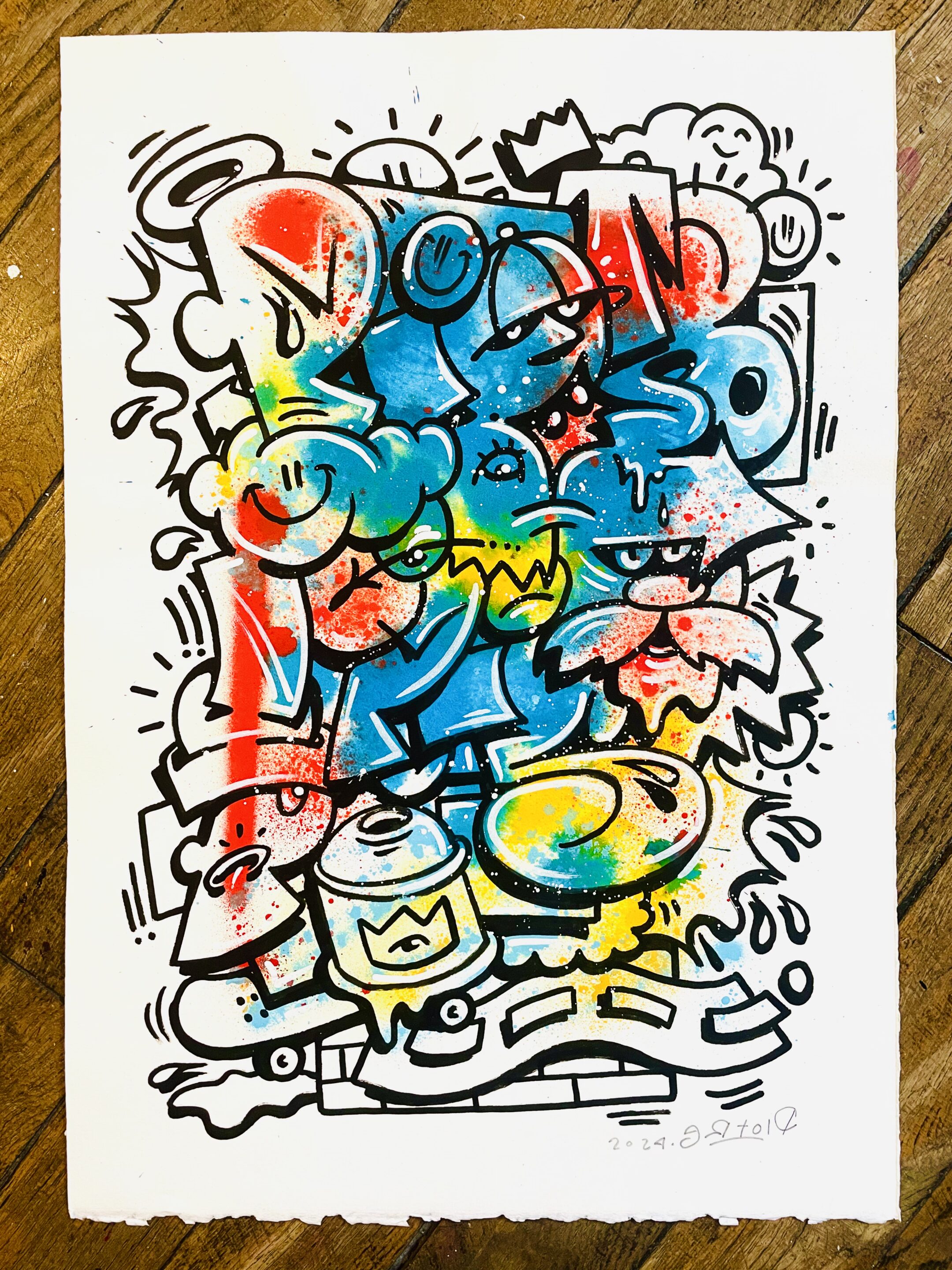ACRYLIQUE, AÉROSOL, AQUARELLE, ENCRE