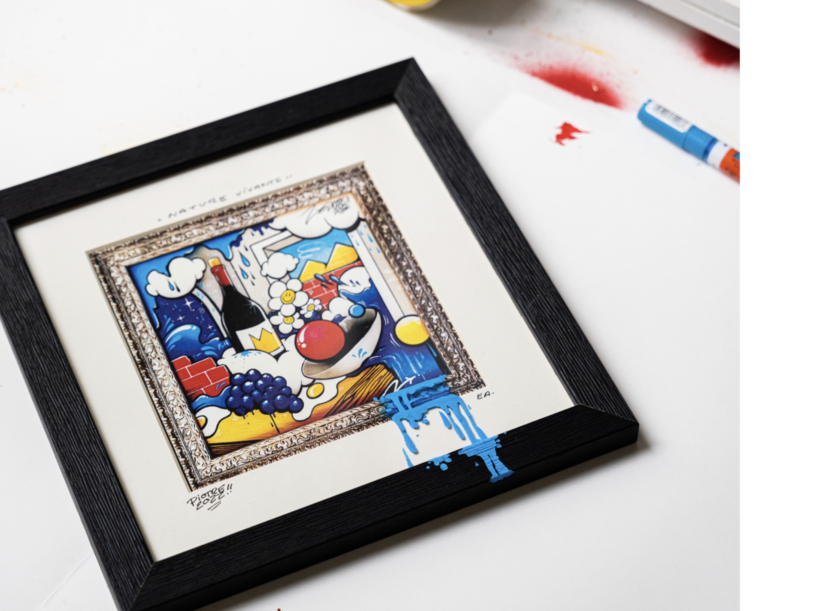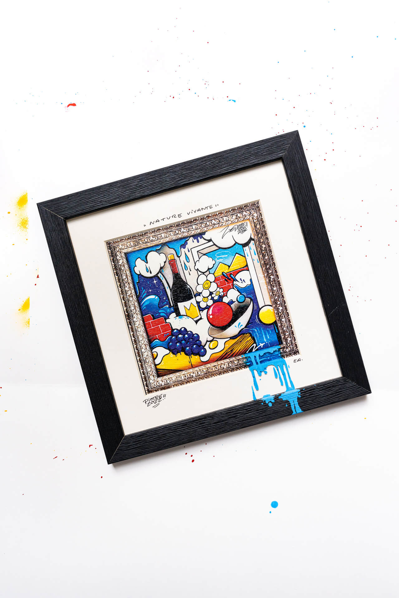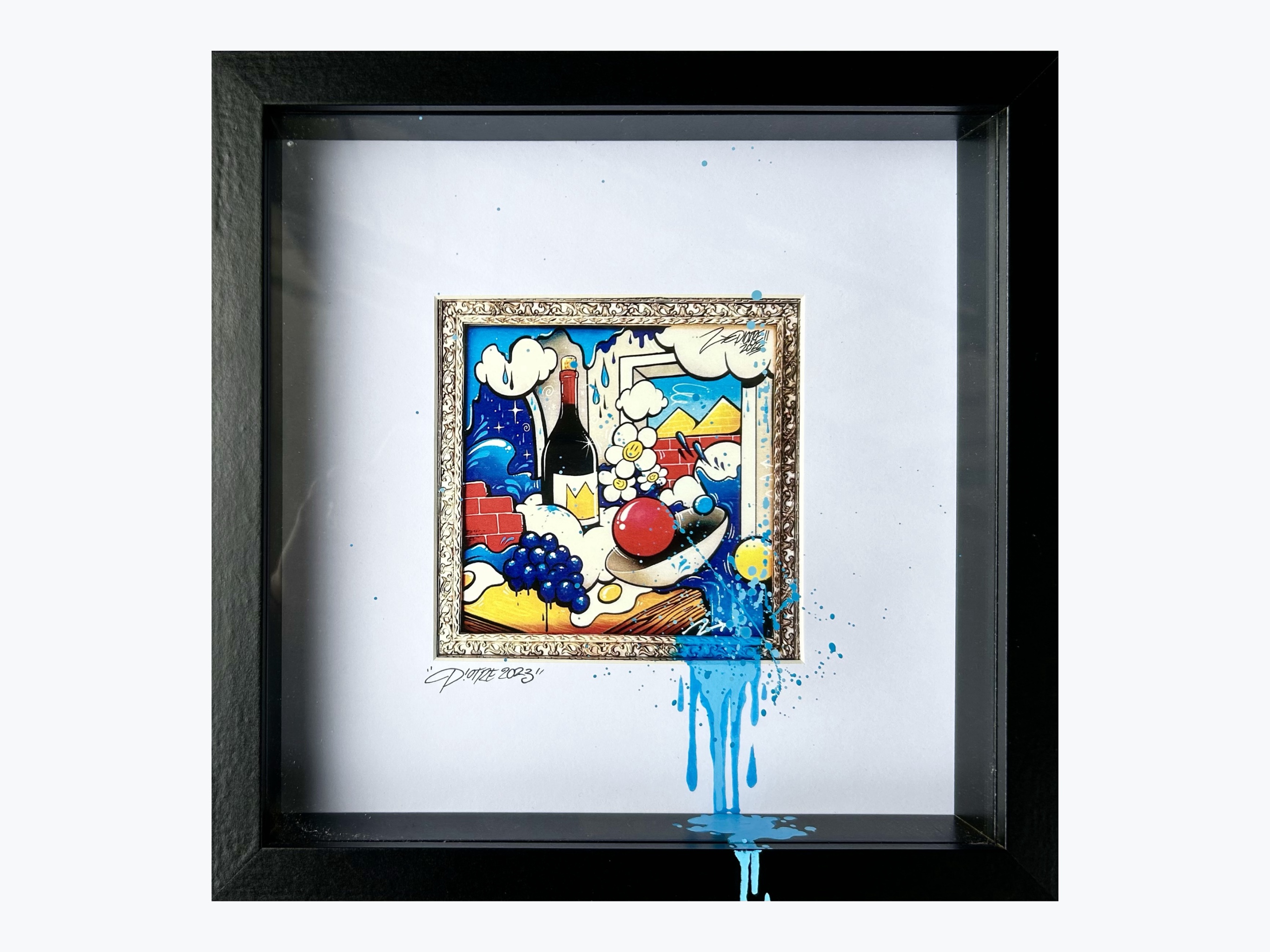 ACRYLIQUE ET AÉROSOL, SUR ÉDITION, ET CADRE 3D CARRÉ, CUSTOMISÉ.