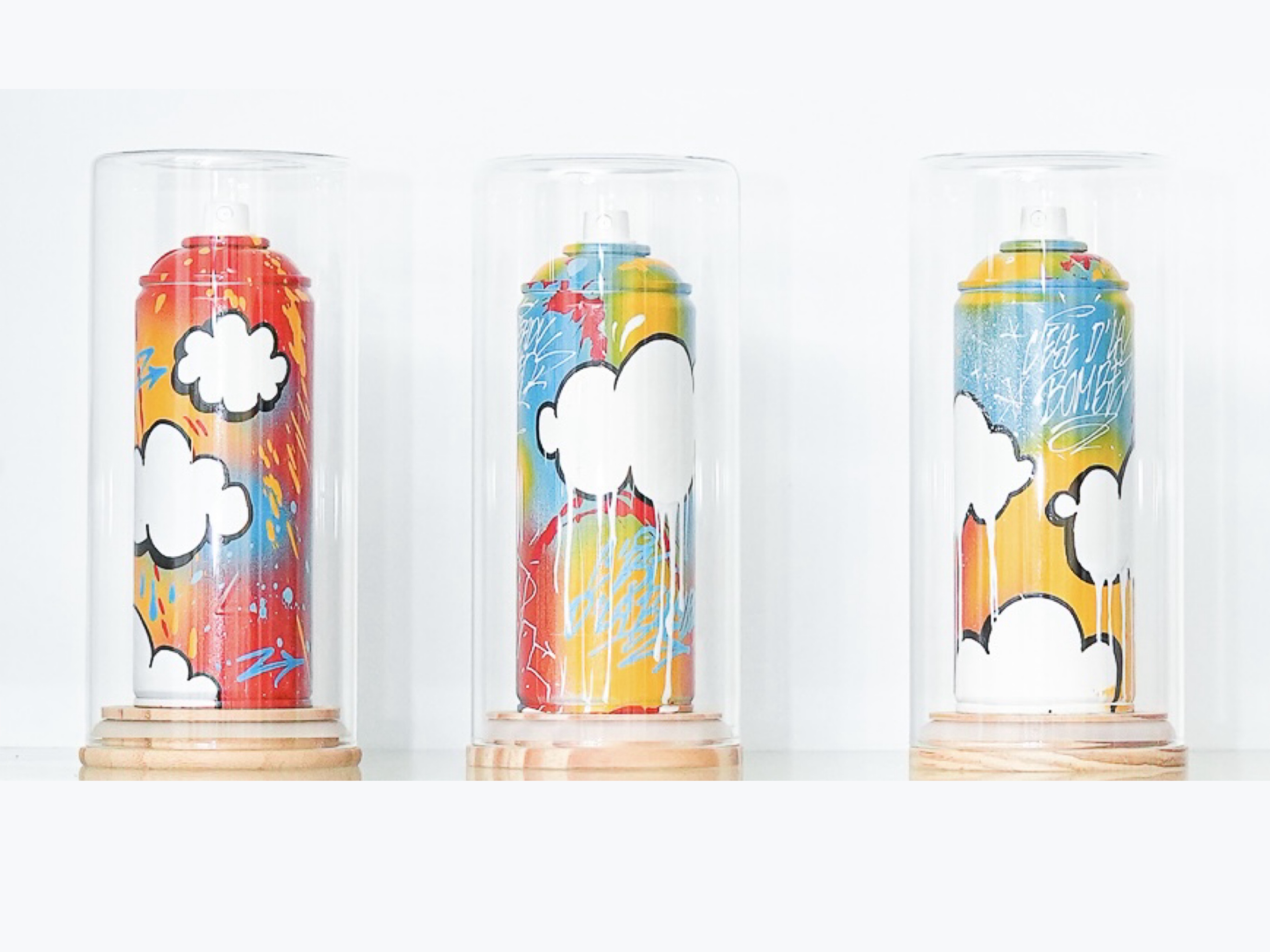 LES BOMBES, SONT DES AÉROSOL UTILISÉES PAR L’ARTISTE.